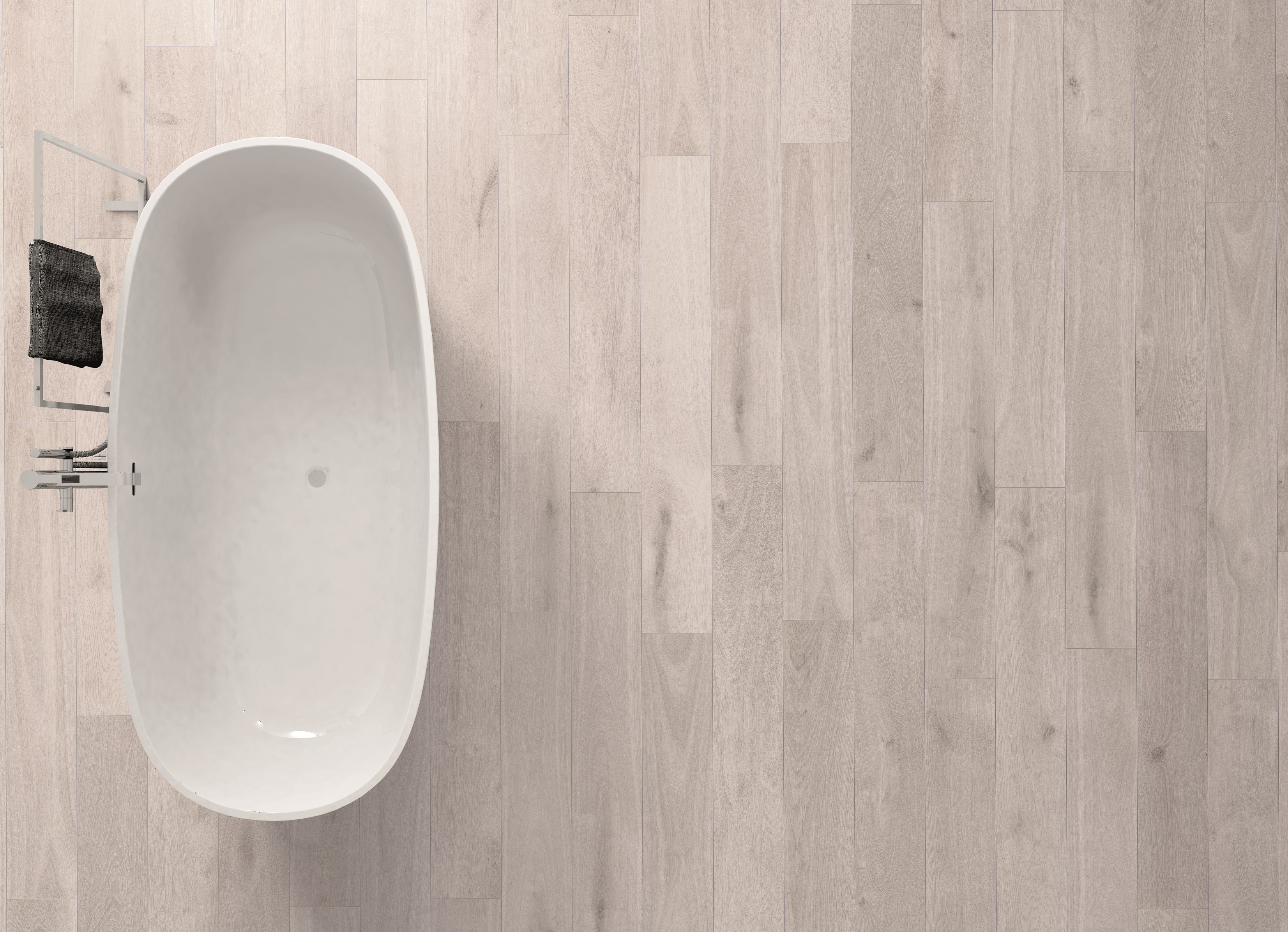The special limestone composition of our SPC flooring (Stone Plastic Composite), combined with the joint click system, prevents water from damaging your floor. This makes the SPC suitable for commercial places, as well as for residential projects - including bathrooms.