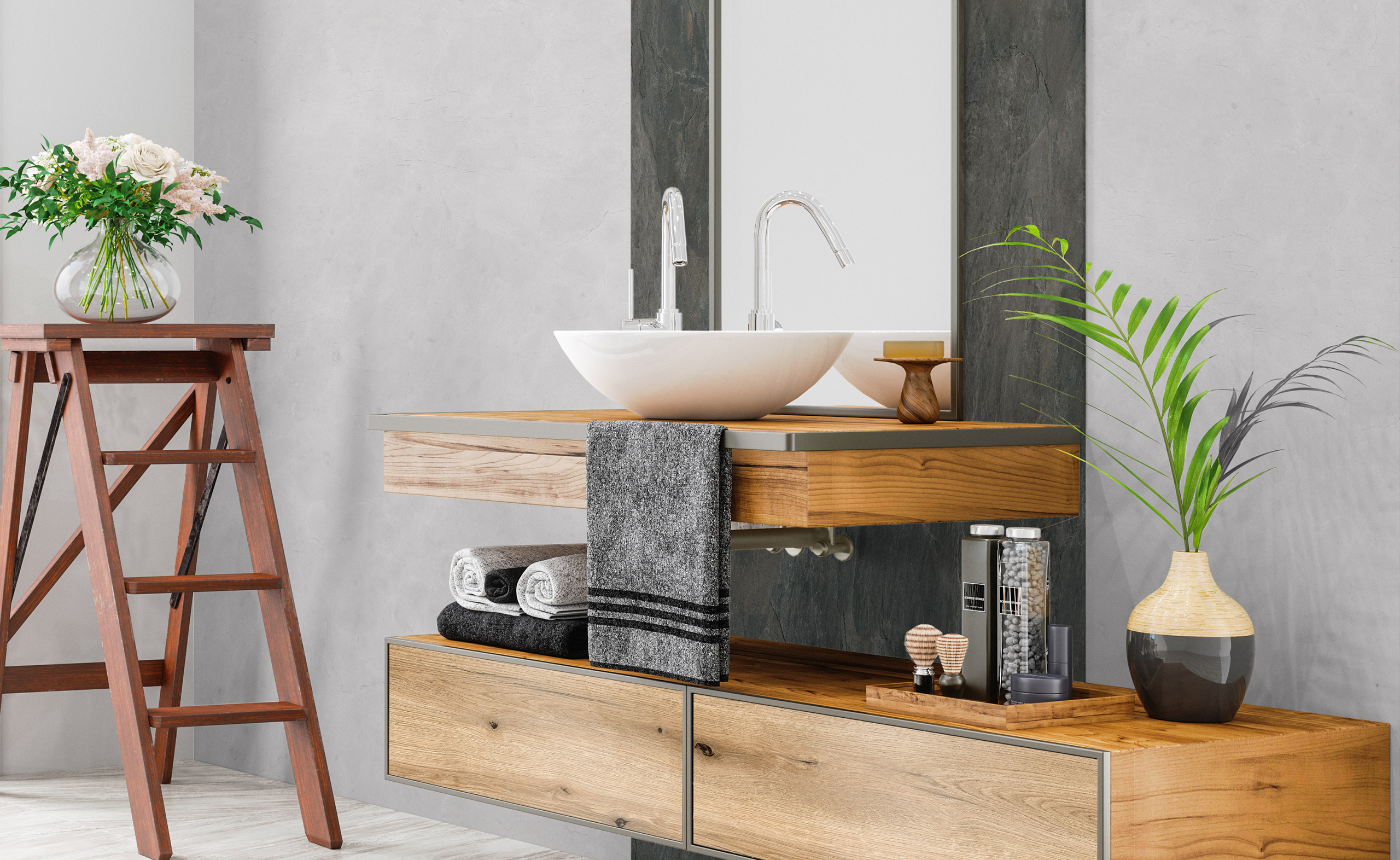 Our hand samples for the desired laminate floor or wall panel offer a practical and handy way to see for yourself the look and feel of the material before making the final decision. These samples are available in true-to-original dimensions and surface textures, so you can compare the colors, patterns and textures directly in the room. Ideal for an accurate visualization and to ensure that the new floor or wall panel fits perfectly with your room concept. Simple, practical and an essential tool when choosing your design.